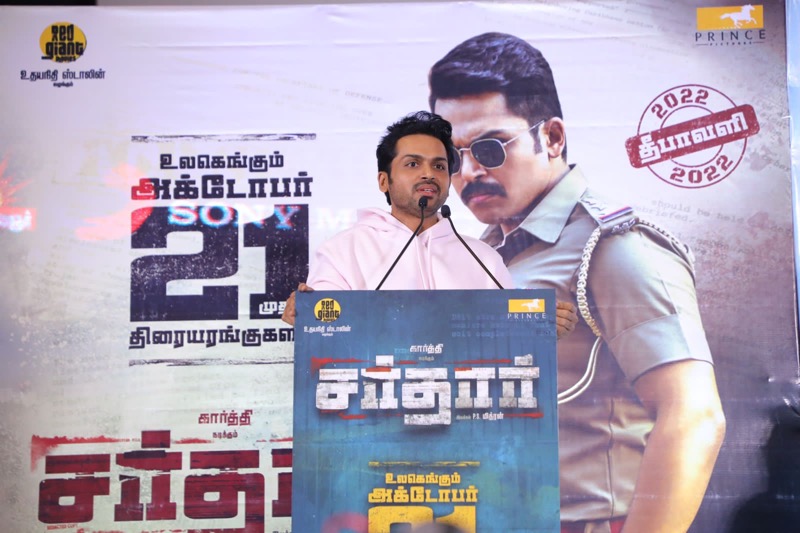 பிரின்ஸ் பிக்சர்ஸ் சார்பில் எஸ்.லக்ஷ்மன் குமார் தயாரித்து, கார்த்தி இரட்டை வேடங்களில் நடிக்கும், பி.எஸ்.மித்ரன் இயக்கத்தில் உருவான படம் சர்தார். இப்படத்தின் டிரைலர் வெளியீட்டு விழாவில்
