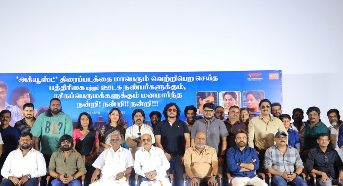 ஜேசன் ஸ்டுடியோஸ், சச்சின் சினிமாஸ், ஸ்ரீதயாகரன் சினி புரொடக்ஷன், மை ஸ்டுடியோஸ் நிறுவனங்கள் சார்பில் தயாரிப்பாளர்கள் உதயா,தயா என்.பன்னீர் செல்வம்,எம்.தங்கவேல் ஆகியோரின் தயாரிப்பில், பிரபு ஸ்ரீநிவாஸ் இயக்கத்தில் ஆகஸ்ட் 1 அன்று வெளியான ‘அக்யூஸ்ட்’ திரைப்படம் இரசிகர்களின் பேராதரவுடன்